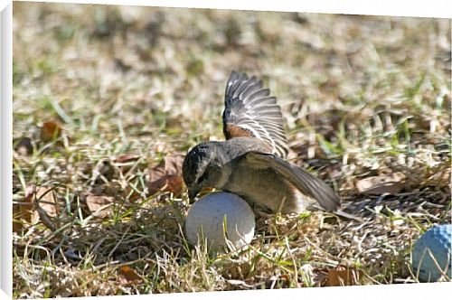 x8 Canvas Print, White Sides. showing Cape Sparrow - female attempting to incubate a golf ball, behaviour probably. ASW- Cape Sparrow - female attempting to incubate a golf ball, behaviour probably triggered by maternal instinct caused by the shape of the ball. Grahamstown, Eastern Cape, South Africa Passer melanurus Endemic in South Africa, Botswana, Namibia and coastal Angola Alan J. S. Weaving Please note that prints are for personal