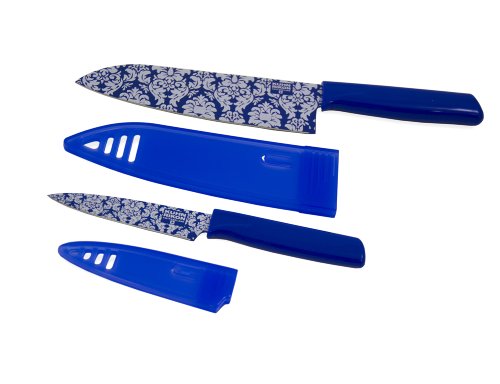 Kuhn Rikon Colori Art Chef's and Paring Knife, Blue Damask Review