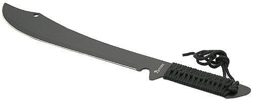 Complete Length 19" Blade length 13" Black SHARP blade. Stainless steel. Black cloth like handle. Sheath included! Nicely packaged