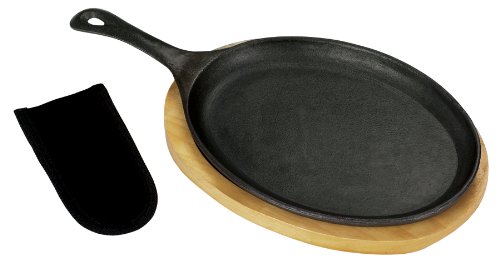 Bayou Classic 7408 Fajita Pan with Wooden Tray and Mitt Feature