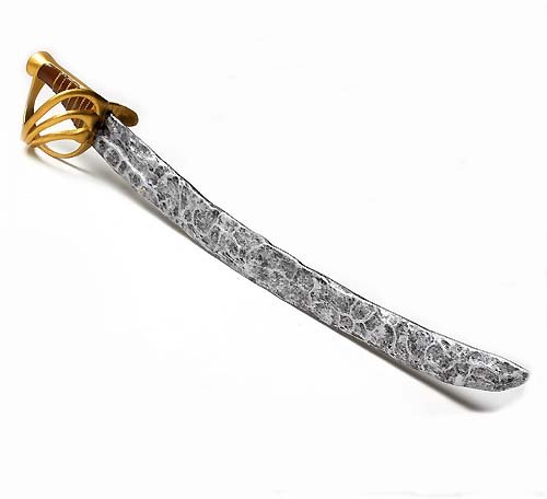 Avast ye maties! No self respecting Pirate would be caught dead without his trusty cutlass! Arm ye self and fight for ye Halloween loot. Pirate Sword has a blade with carved in silver-like hard plastic and a gold hard plastic handle. An officially licensed Disney, Pirates of the Caribbean product. Length is 28.5". Plastic.