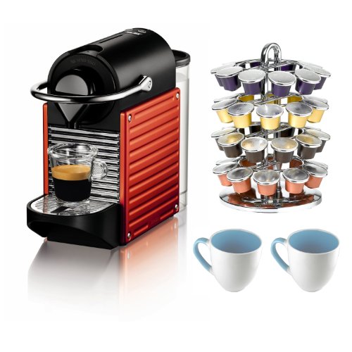 Nespresso C60 Pixie Espresso Maker in Red + Nifty Capsule Coffee Carousel + 2 Stoneware Mugs Review