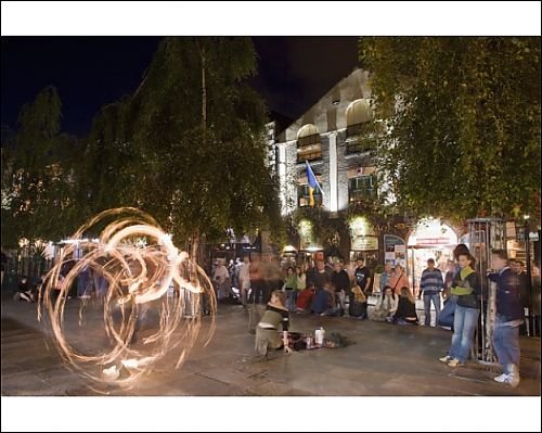 - Image of Street entertainers, fire eaters, Temple Bar, Dublin, Republic of Ireland, is supplied by Robert Harding. © Martin Child